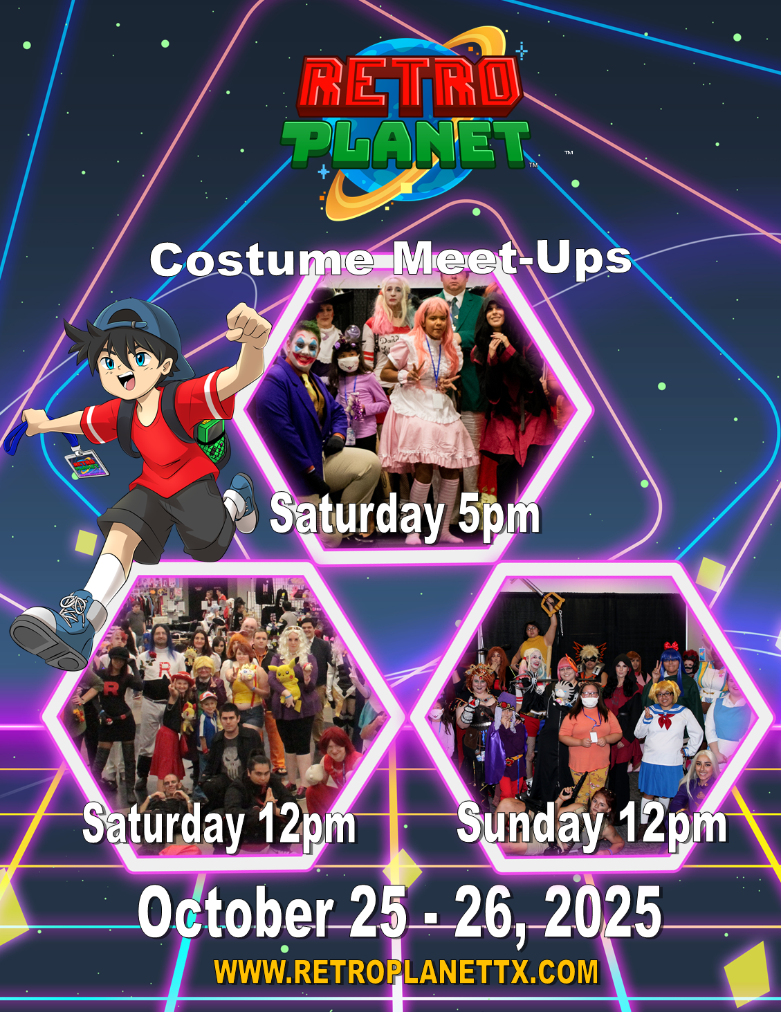 Get your finest costume to the Retro Planet Costume Meet-Ups! Here is your chance to meet and take photos with your fellow cosplayers! All ages are welcome. It is FREE to participate with a valid Retro Planet badge or wristband.